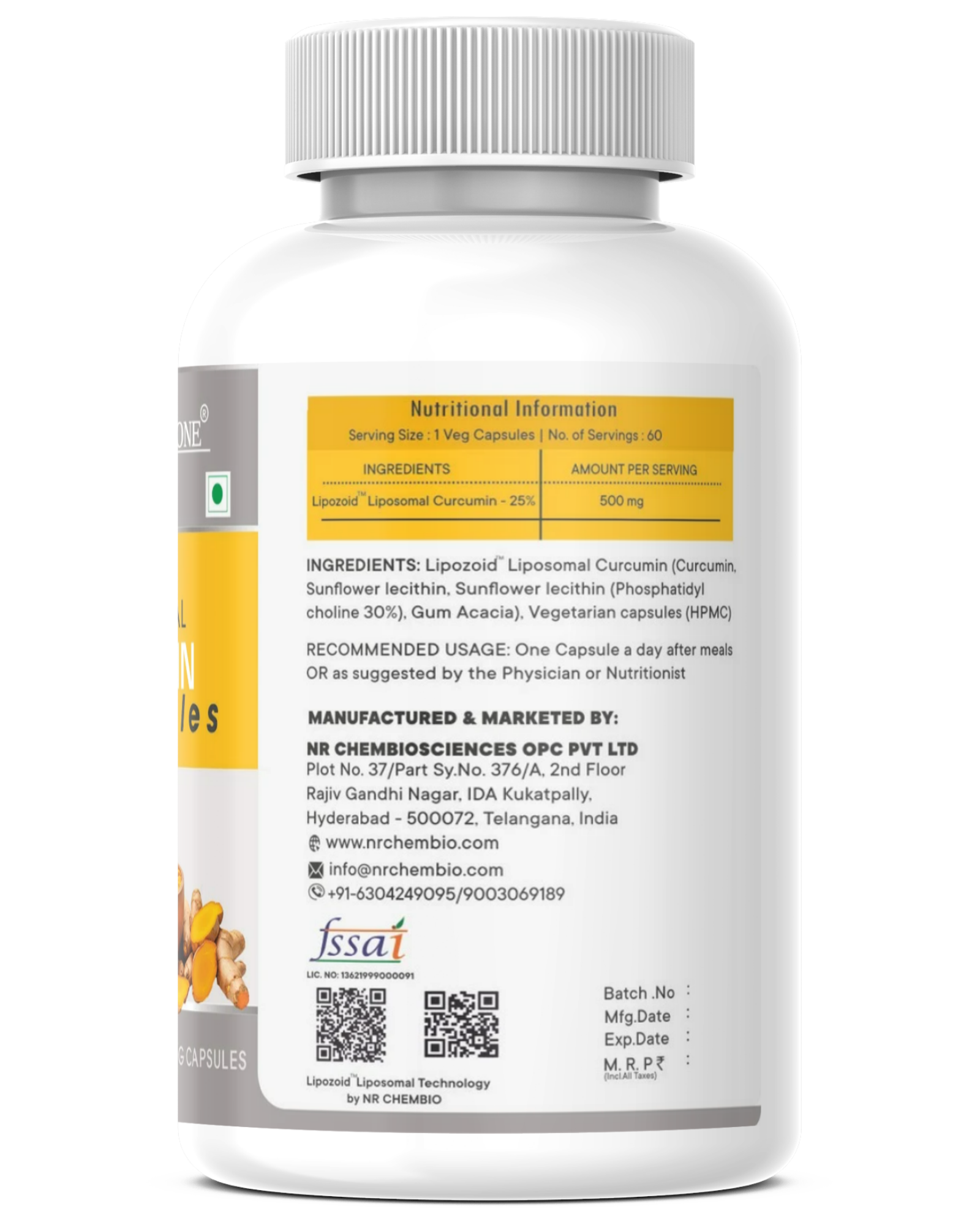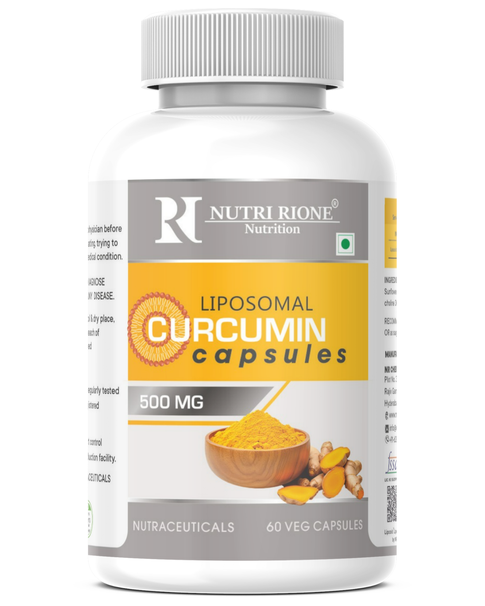Nutri Rione Liposomal Curcumin, Encapsulated, high Absorption – Veg Capsules