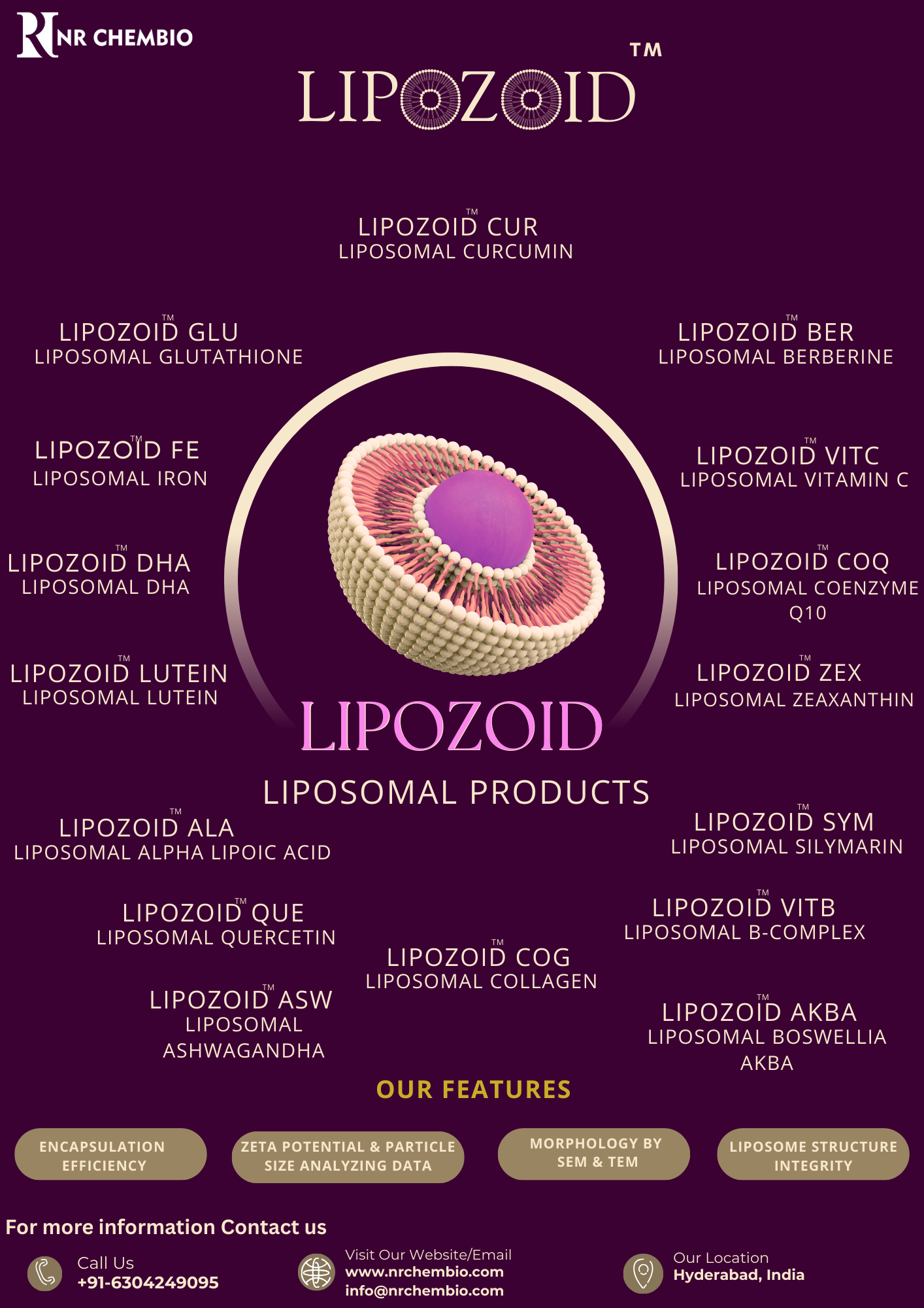 NR CHEMBIO utilizes LIPOZOID Patent pending Liposomal Delivery Technology for nutraceutical product development. Liposomal encapsulation represents a significant advancement in supplement formulation. By using liposomes—tiny vesicles made from phospholipids—it enhances the stability and absorption of nutraceuticals, which typically have poor bioavailability when taken orally.